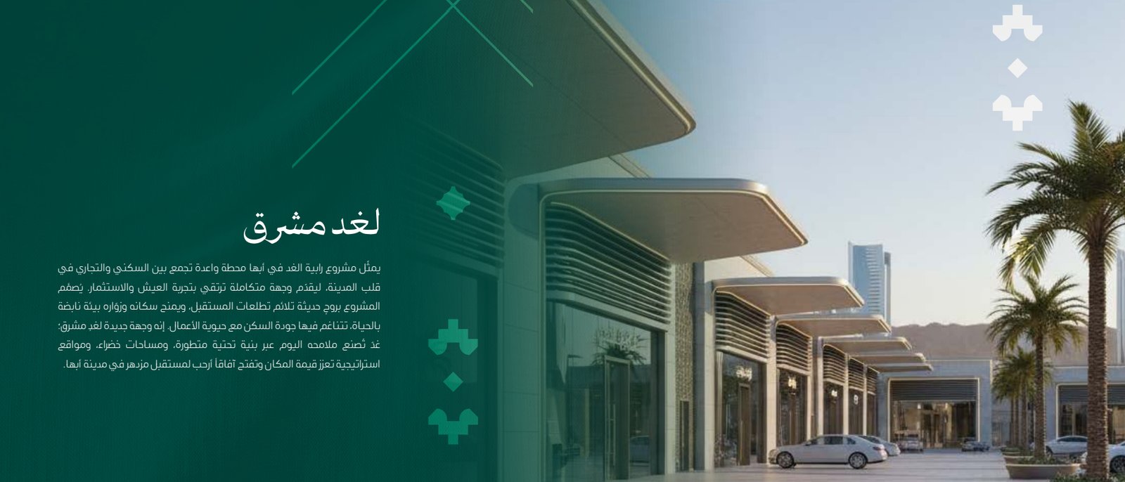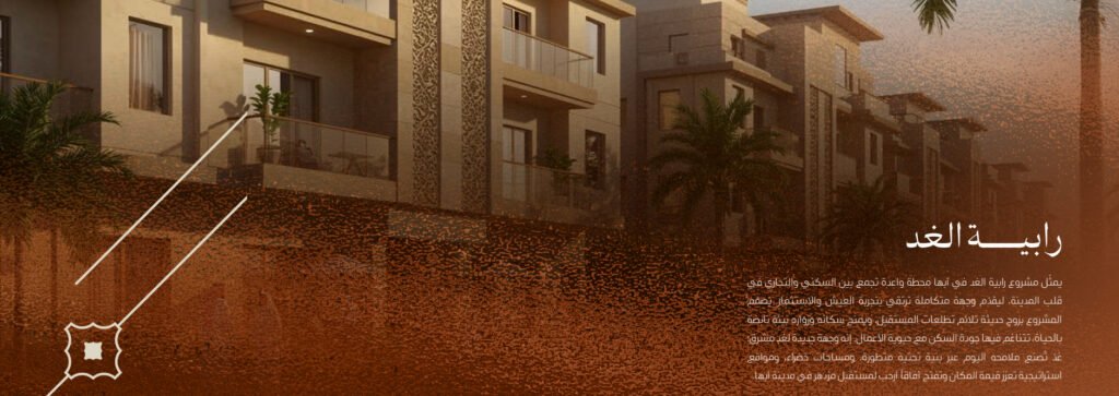 “رابية الغد” هو وجهة عمرانية واعدة في قلب مدينة أبها، تجسد مفهوماً متكاملاً يجمع بذكاء بين السكن والتجارة ليرتقي بتجربة العيش والاستثمار. صُمم المشروع بروح عصرية تحاكي تطلعات المستقبل، ليقدم بيئة نابضة بالحياة تتناغم فيها جودة السكن الراقية مع حيوية الأعمال التجارية، صانعاً بذلك وجهة جديدة لغدٍ مشرق تتشكل ملامحه اليوم